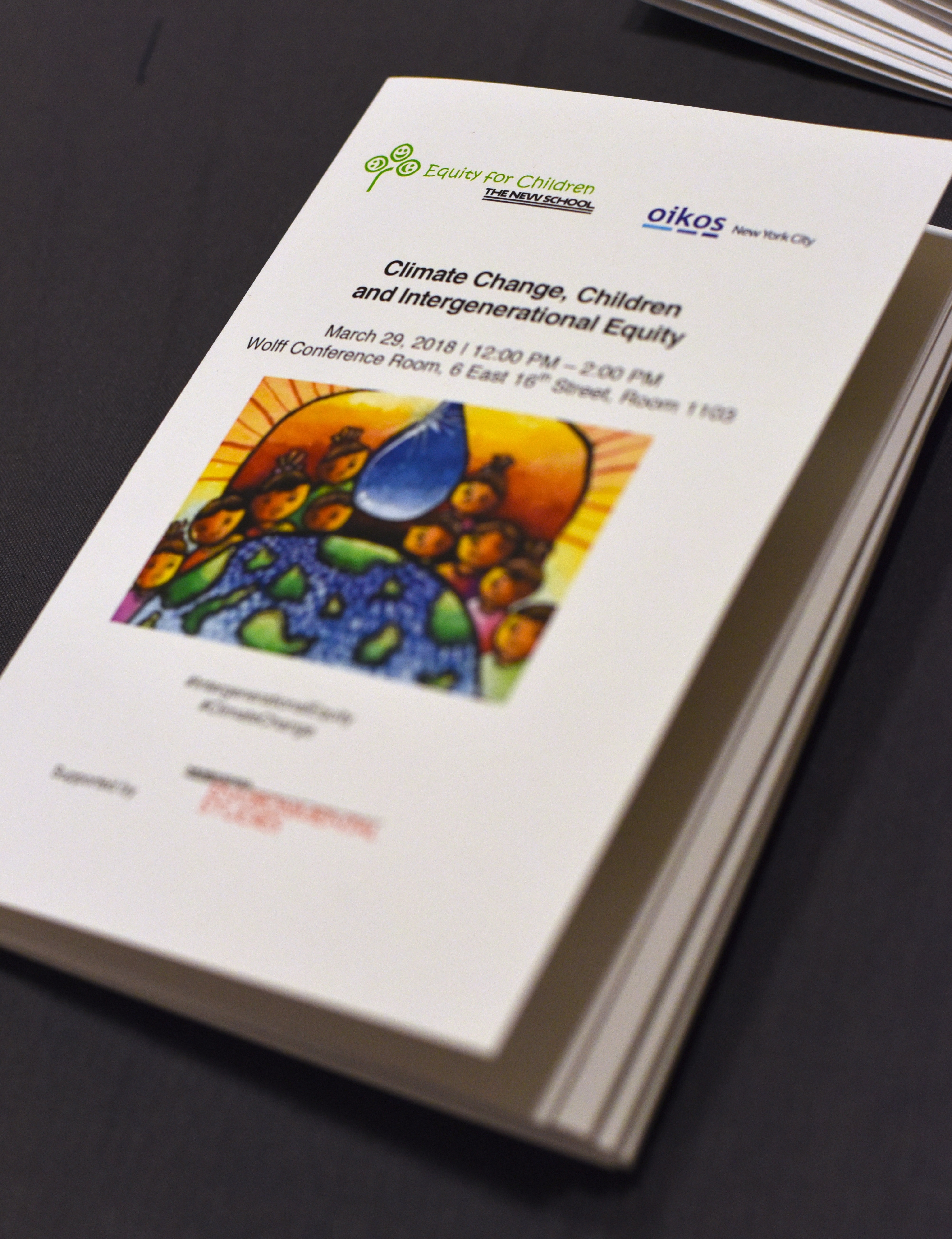 2018: Climate Change, Children and Intergenerational Equity Panel, The New School Children for Equity, oikos New York City, The New School Environmental Studies, The New School, New York, New York, United States, March 29.