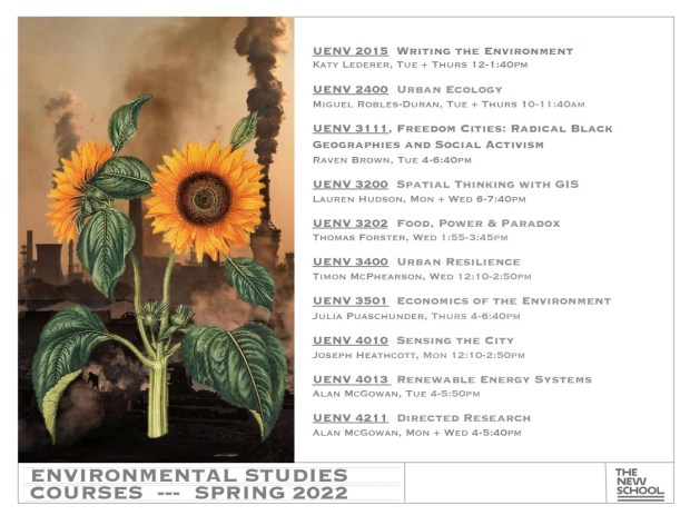 ‘Economics of the Environment,’ Spring 2022, Environmental Studies, School of Public Engagement and International Affairs, The New School, New York.
